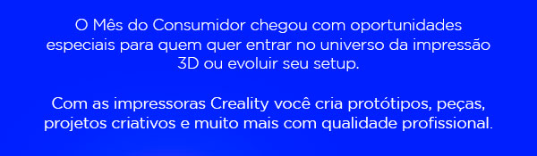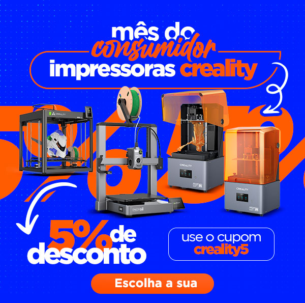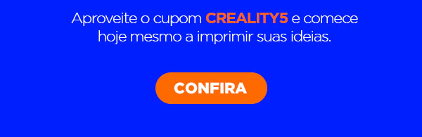 Use o cupom CREALITY5 e comece hoje mesmo a imprimir suas ideias.